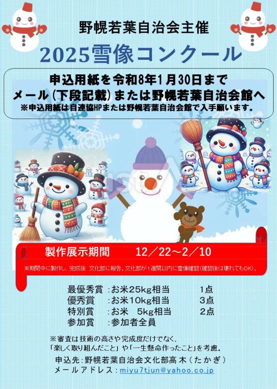 令和7年度 雪像コンクールを実施します。