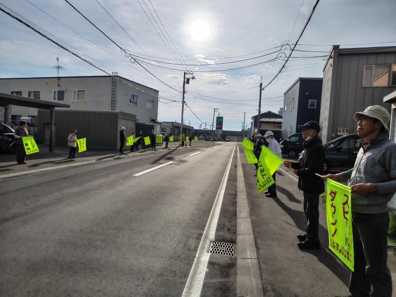 9月29日、早朝、街灯防災部が中心になり、交通安全の呼びかけ「旗の波」を実施しました。松並クラブの協力もあり、20名参加しました。