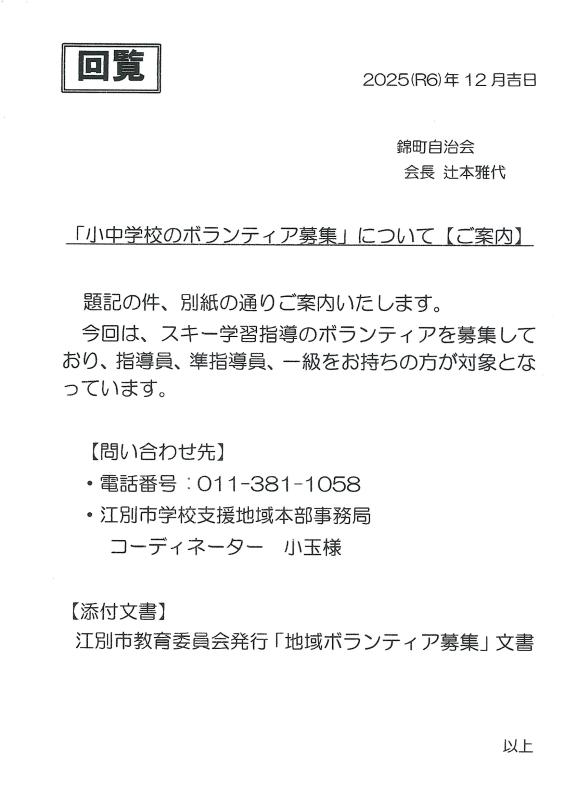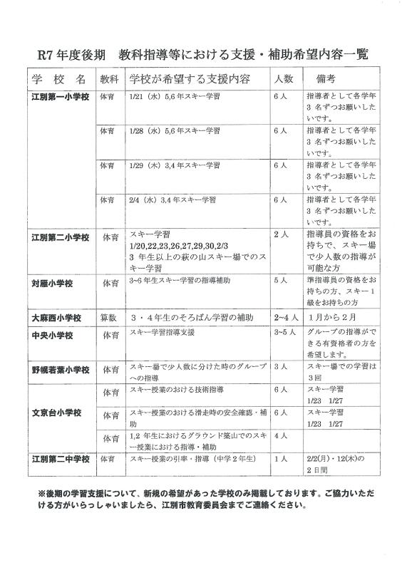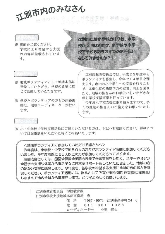 小中学校のボランティア募集について
