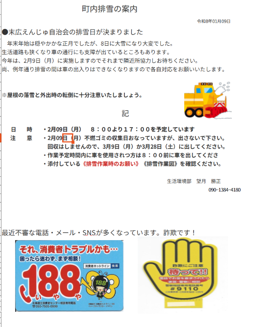 町内排雪の日にちが決まりました