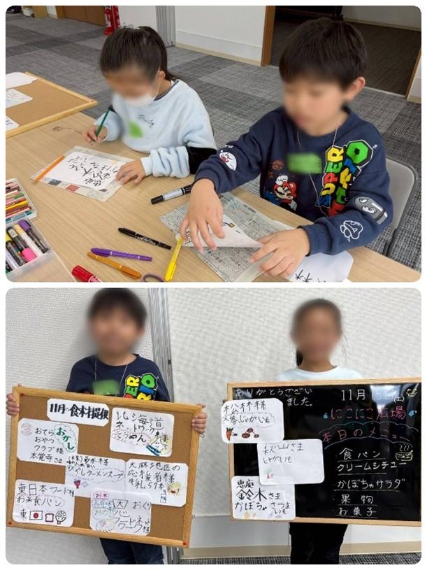 ↑食材提供とメニューのボードを二人で書いてくれました!とっても上手ですね。イラストも入れて時間をかけて丁寧に作ってくれました。