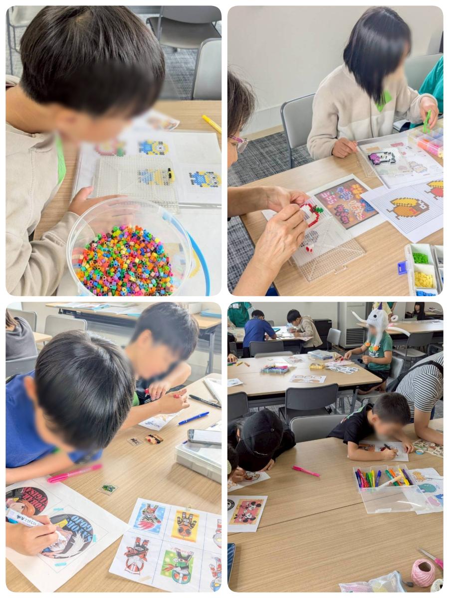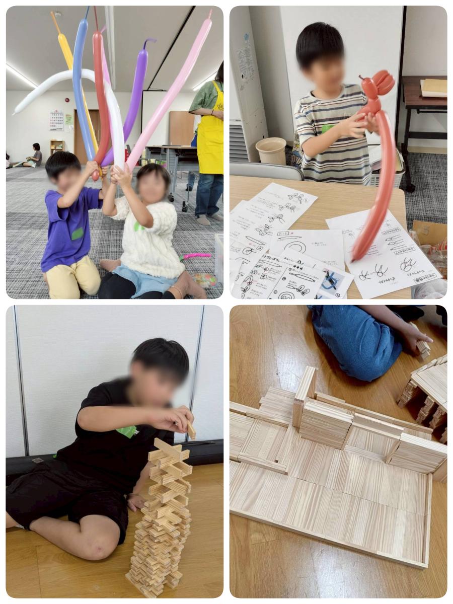 いつものプラバン、アイロンビーズ、バルーンアート、カプラ。相変わらず人気です。その他にも用意されたいろいろな遊びを自由に楽しんでいました。