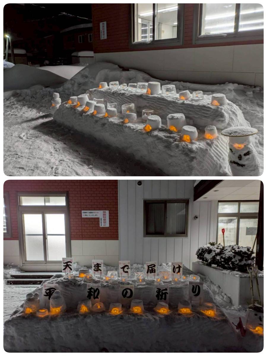 夕方17:00〜雪像にキャンドルを灯す点灯式がありました。室内では暖かいココアを飲みながら、なおこバンドさんの素敵な演奏会を楽しみました。ゆったりした安らぎのひとときをありがとうございました。