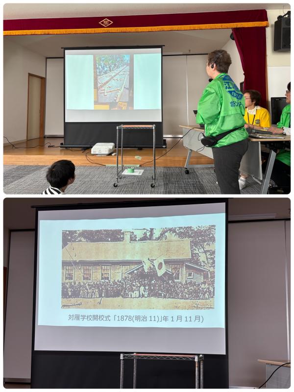 スライドショーを見ながら、江別の特産であるレンガや江別の歴史などのお話をしてもらいました。